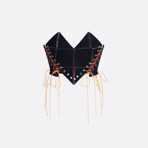 Áo corset mang đậm tinh thần của nghệ thuật gạch bông giógấp giấy Origami của Nhật Bản, không chỉ là sự kết hợp tinh tế mà còn là sự sắp xếp có chủ ý của họa tiết từ các tầng vải, tạo ra một hiệu ứng 3D độc đáo và quyến rũ. Thiết kế cột dây eo phá cách cùng với các dây grecian là điểm nhấn tinh tế, tạo nên một vẻ đẹp thanh lịch và độc đáo cho chiếc áo.