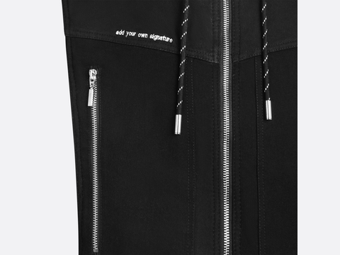 Chiếc áo không tay với thiết kế phá cách, kết hợp mũ chần bông và dây rút thông minh, tạo ra điểm nhấn đặc biệt, giúp thay đổi độ rộng của áo một cách linh hoạt. Với hai lựa chọn vải denim hoặc vải kaki tái chế, mỗi sản phẩm mang đến một cái nhìn sáng tạo và phong cách đường phố đặc trưng cho riêng bạn.