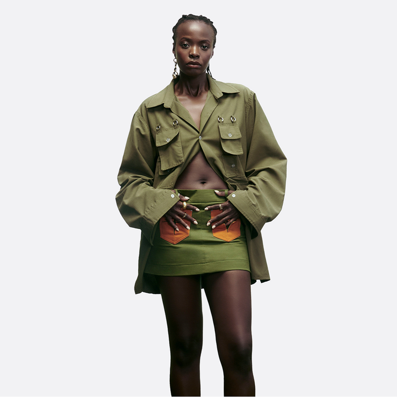 Loose, {trendy} shape combined with vibrant patterns, bringing a style {both modern and mysterious} .