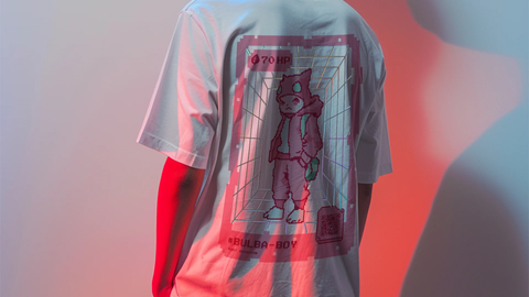 Bulbasaur - Grass-type Pokémon, symbol of latent vitality, appears {vividly} through Root's virtual reality t-shirt design.