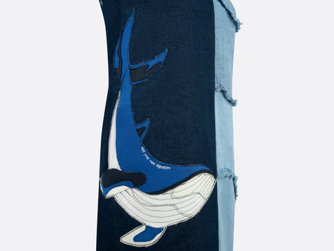 Đầm denim The Wave - biểu tượng của sự linh hoạttái sinh, tỏa sáng với hơi thở đại dương đầy mê hoặc. Họa tiết cá voi hoa tiêu rực rỡ, tái hiện từ vải denim tái chế, kết hợp với những đường gợn sóng thêu tay tinh xảo, tạo nên một bức tranh thời trang độc đáo và lịch lãm. Điểm nhấn ấn tượng là chiếc khóa thêu tỉ mỉ, nơi bạn có thể thể hiện dấu ấn cá nhân, biến chiếc đầm trở thành một tuyệt tác thời trang độc lạ, hiện lên cái chất riêng của bạn.